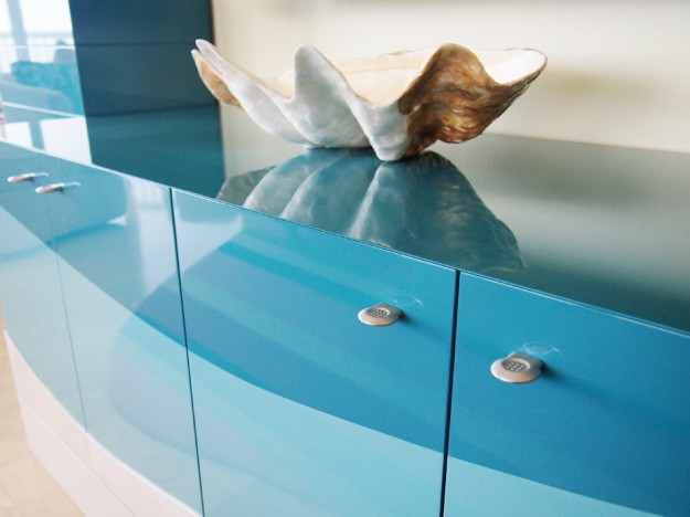 The Interior Designer’s “fun beach ball” motif was a perfect match for our custom painted high gloss colors.